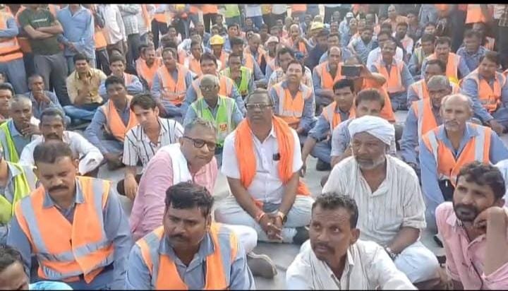 बैकुंठ सीमेंट वर्क्स के 1000 श्रमिक दो दिन से धरने पर
