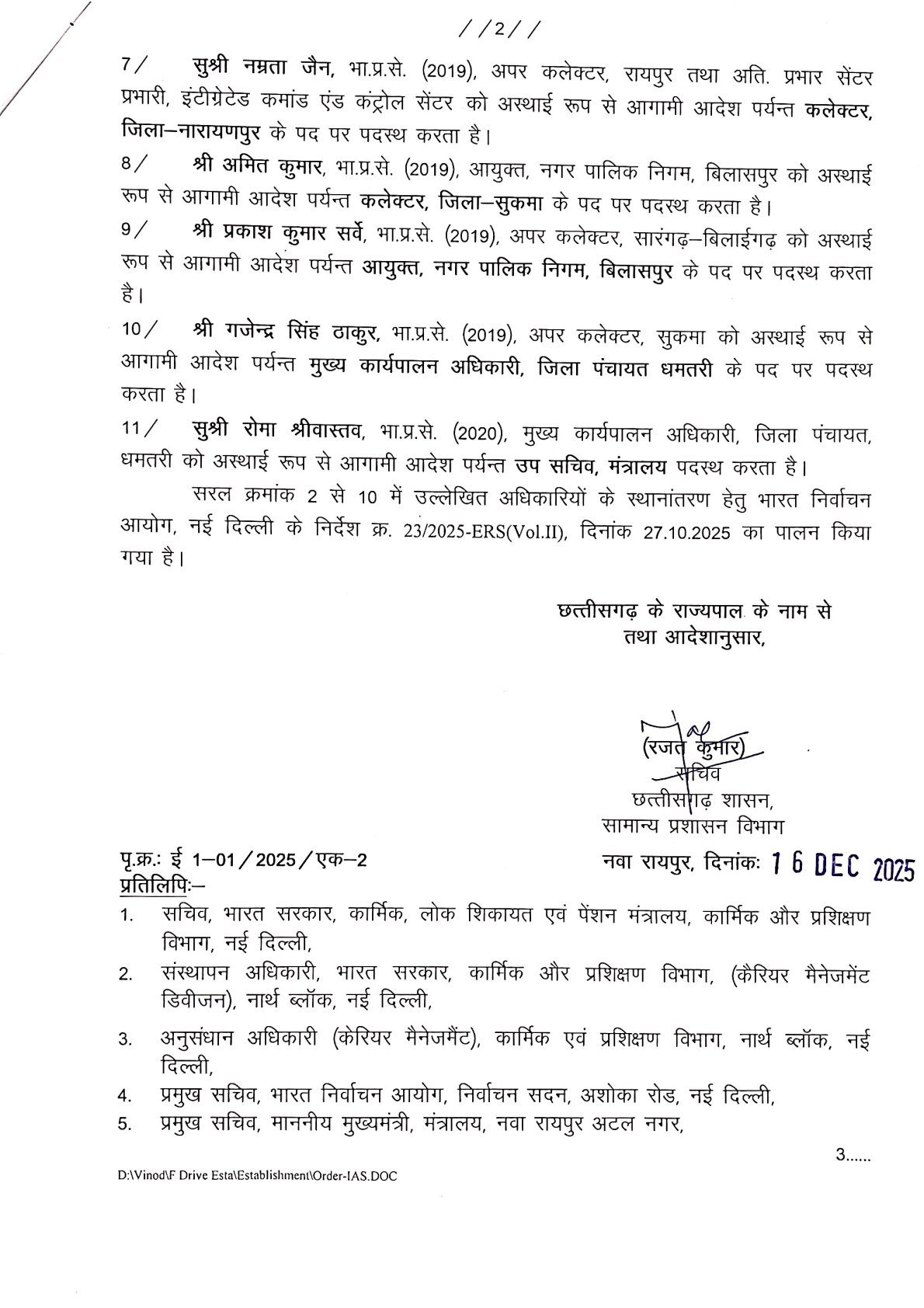 CG Transfer Breaking : 11 IAS अधिकारियों का तबादला, देखें आदेश