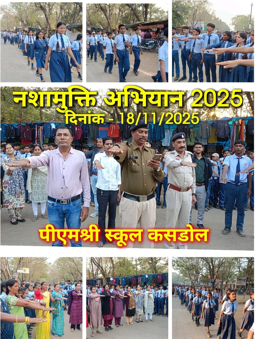 कसडोल। चंदन जायसवाल : नगर पंचायत कसडोल में संचालित पीएमश्री स्वामी आत्मानंद उत्कृष्ट विद्यालय के सभी छात्र छात्राओं ने आज 18/11/2025 को नशामुक्ति अभियान के तहत रैली निकाला गया। जिसमें थाना कसडोल से उप निरीक्षक एस आर नायक,प्रधान आरक्षक महेंद्र पोर्ते,आरक्षक राजू वर्मा,चुन्नी साहू, प्रमुख अधिकारी गण उपस्थित हुए। इस अवसर पर उप निरीक्षक ने पीएमश्री स्कूल में उपस्थित होकर सभी बच्चो को नशा से दूर रहने की हिदायत दी। साथ ही नशा से होने वाले दुष्परिणामों के बारे में भी बताया। इसके साथ ही सभी बच्चो को मोबाइल के जागरूकता तहत उसके दुष्परिणाम और होने वाले नुकसान के बारे में भी बताया कि किस तरह से साइबर क्राइम बढ़ते जा रहे हैं। और छोटे बच्चे कैसे उसके शिकार बनते जा रहे हैं। और उसके कैसे बचे इसके बारे भी बताते हुए कहा कि मोबाइल का उपयोग उतना ही करे जितना अनिवार्य है। सभी बच्चे ऑनलाइन गेम से दूर रहे।