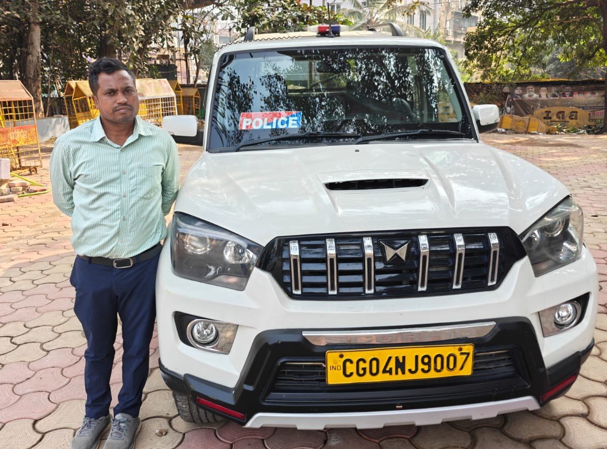 रायपुर : स्कार्पियों में लाल नीली बत्ती एवं सायरन लगाकर शराब के नशे में वाहन चलाने वाले पर पुलिस ने की कार्यवाही
