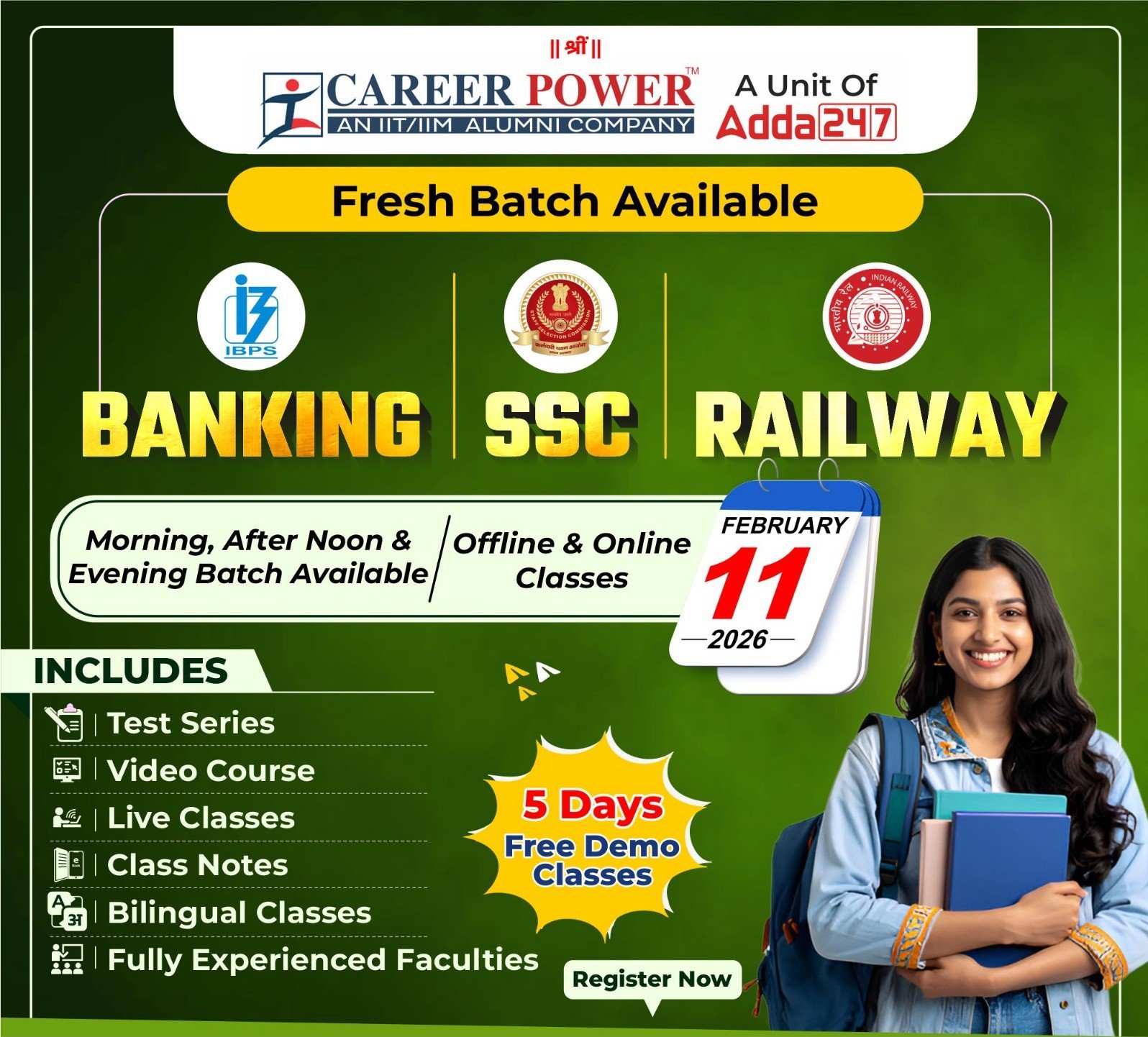रायपुर । CAREER POWER, जो कि एक प्रतिष्ठित IIT/IIM एलुमनी कंपनी एवं Adda 247 की इकाई है, ने आगामी BANKING, SSC और RAILWAY परीक्षाओं की…
