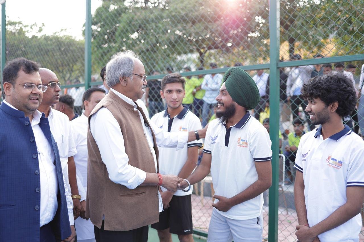 स्वागत उद्बोधन में विश्वविद्यालय के कुलाधिपति अभिषेक अग्रवाल ने प्रतिभागियों का उत्साहवर्धन करते हुए कहा कि हमारे लिए यह गौरव का विषय है कि सांसद खेल महोत्सव जैसे महत्वपूर्ण आयोजन का ब्लॉक स्तरीय चरण हमारे परिसर में सफलतापूर्वक संपन्न हो रहा है। खेल न केवल शारीरिक क्षमता को बढ़ाते हैं बल्कि व्यक्तित्व, नेतृत्व और अनुशासन का निर्माण भी करते हैं। आज यहाँ उपस्थित सभी खिलाड़ी हमारे समाज की युवा शक्ति और सकारात्मक ऊर्जा के प्रतीक हैं। कार्यक्रम के दौरान डॉ व्ही के गोयल अध्यक्ष, छत्तीसगढ़ निजी विश्वविद्यालय विनियामक आयोग, माननीय श्री ध्रुव कुमार मिर्धा जी अध्यक्ष, चर्म शिल्पकार विकास बोर्ड छ.ग. शासन, डॉ सलीम राज अध्यक्ष वक्फ़ बोर्ड, श्री नवीन अग्रवाल जी अध्यक्ष, जिला पंचायत रायपुर, श्रीमती लक्ष्मी यशवंत टंडन जी सदस्य, जिला पंचायत रायपुर, श्री संदीप जैन जी अध्यक्ष, नगर पालिका परिषद आरंग एसडीएम आरंग श्रीमती अभिलाषा पैकर, जनपद सीईओ अभिषेक बैनर्जी सहित 1250 खिलाडी एवं ५०से अधिक खेल अधिकारी उपस्थित रहे ।