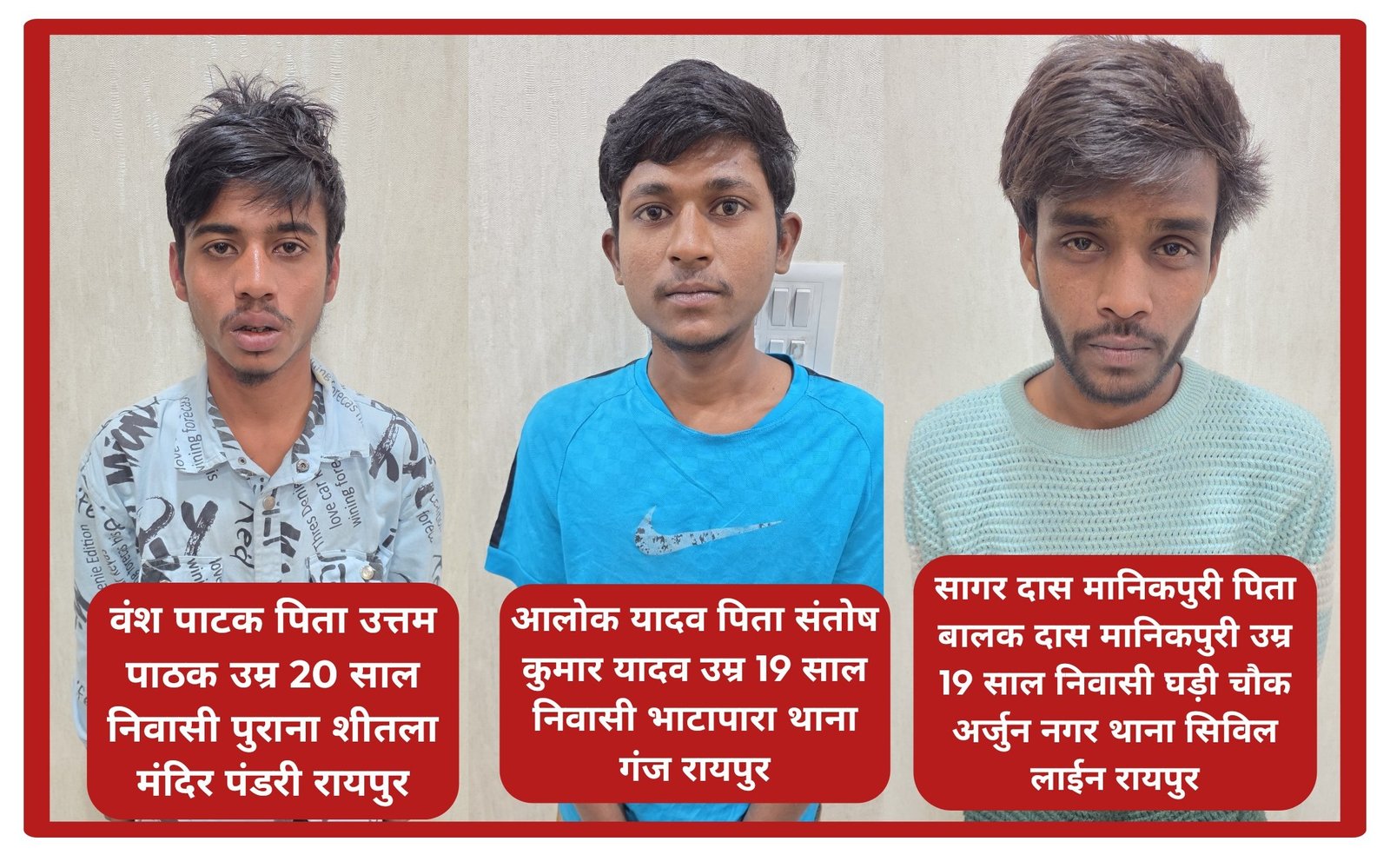 1. वंश पाठक (20 वर्ष) – निवासी शीतला मंदिर, पंडरी (मुख्य आरोपी)।